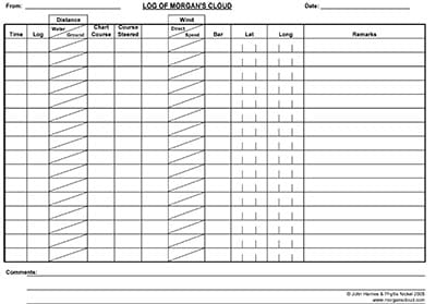 Custom marine log book page from aluminum expedition sailboat Morgan’s Cloud.