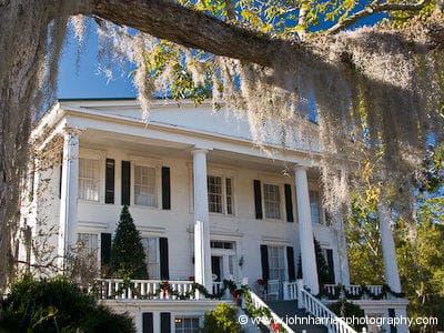 An antebellum mansion framed by Spanish moss at St. Marys, Georgia.