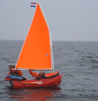 Portland Pudgy with anchor and sail.