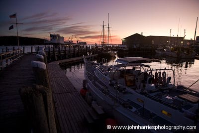 Aluminum expedition sailboat Morgan’s Cloud without her mast, lying alongside at Billings Diesel and Marine, waiting to be hauled.