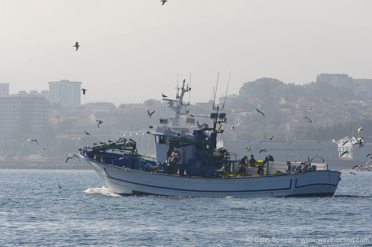This is a huge business – there are apparently more than 3000 viveiros in the Ria de Arosa alone, and ashore there are substantial processing freezing and canning plants that similarly boost employment in the area. At one port we visited, two large refrigerated ships were loading mussels, for export. Mussels are the mainstay of production, but other shellfish such oysters and queen scallops are also being successfully farmed, whilst finfish such as turbot, sole and bream are being reared for the fresh fish trade.