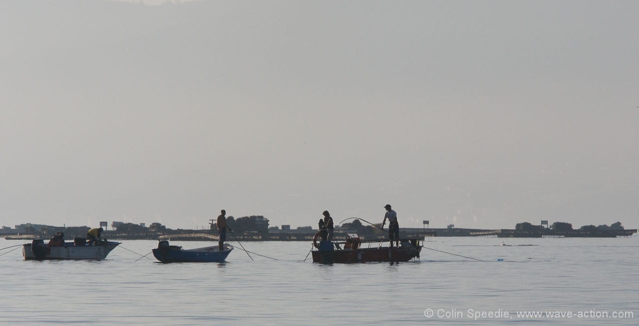 The fishermen who surrounded us were amiable enough, especially considering we were sitting right in the middle of what was clearly a prime fishing spot for them, but rather than test their patience, we upped anchor and moved out of their way. But it took me back to Scotland, when the salmon farming business was in its early days. During the boom years salmon cages proliferated in very many of the small bays and lochs that had long been favoured anchorages, in many cases making them unusable owing to the cages themselves and their associated mooring lines. Much of that has been reversed now, as the smaller farms proved not to be financially viable and environmentally suspect, and so the farms have consolidated into much larger units, often situated in more open waters.  As a result some beautiful spots have since become usable once more, with the precaution of a tripping line for the anchor – not everyone was assiduous in removing all of the old equipment.
