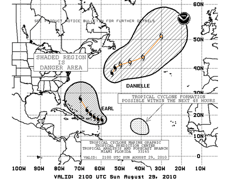 There are a huge number of portals displaying hurricane information, but I figure why not go to the horse’s mouth. I like the NHC site because it concentrates on hard information, not pretty graphics. And because it makes clear in a multitude of ways that hurricane forecasting is still subject to error, particularly beyond 72 hours from forecast time. They even quantify that uncertainty in this product, which is also available by weather fax: