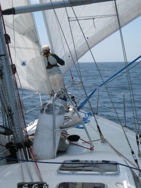 Well, we’re almost implying the same thing. I agree that the further a main is let out, the less yawing you will have. My point was that in a fresh breeze (off the wind), the further forward the center of effort the better she will maintain course. To that effect, it is better to heavily reef the main and fly larger foresails. The reefed and well vanged main in real use becomes less of a chafing factor on moderately swept spreaders. In a breeze, that full main, even let all the way out, will contribute heavily to yaw. I have always been amazed to see people sailing downwind in reinforced tradewinds with a full main and half rolled in headsail, not understanding why they can’t keep their vessel on course.