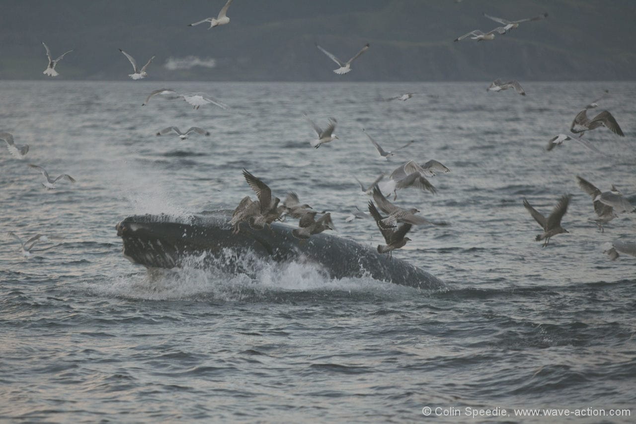 We’re lucky enough to have a couple of camera bodies, and we set them up differently. One has a full frame sensor and is a little older and slower, and so is better for seascape and wide angles, so that one we fit with a 17-35mm wide-angle zoom lens. The other, the photographic equivalent of a machine gun (up to 10 frames per second), is fitted with a 70-200mm Image Stabilised fast zoom, and if the light is bright we’ll attach a 2x teleconverter to make it a 140-400 zoom. Both bodies are set to shutter priority, and adjusted to suitable speeds for the lens and light.