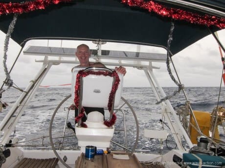 But all good things must come to an end, and we celebrated Christmas Day with squalls and occasional downpours (during Christmas lunch, of course). That night we had our first signs of lightning since departure, fortunately most of it high altitude sheet lightning, but as a taste of things to come it didn’t seem a good omen.