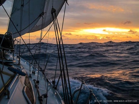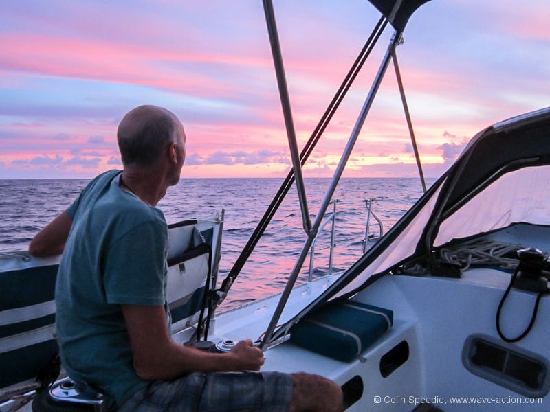 Our best day’s run (noon to noon) was 165.9NM, during three days in which we covered 487.1NM, whilst our worst was 106.7NM in the doldrums. Over the whole passage we averaged 139.7NM per day, at an average speed of 5.8 knots, not at all bad for a heavily loaded cruising boat. And all in reasonable comfort, with few traumas—the best sort of passage there is, at least to this skipper!