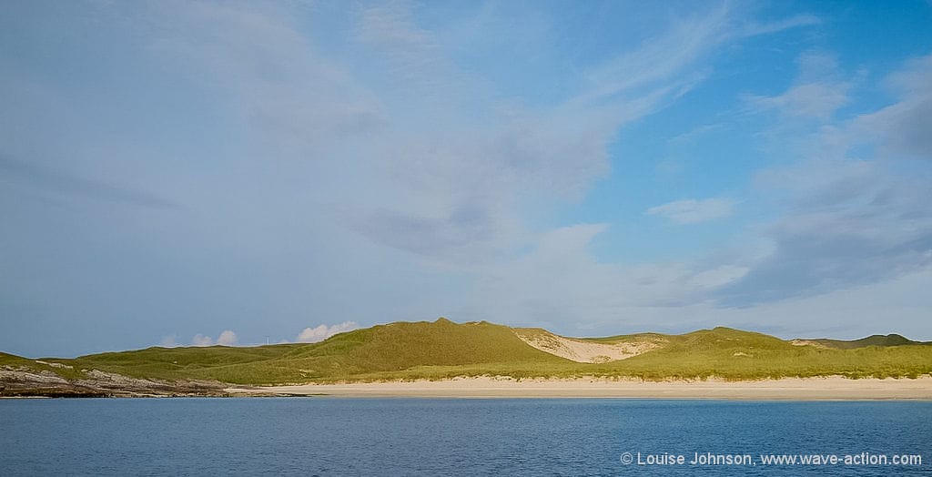 Of course, being the west of Scotland (at 56-57°N) there’s no guarantee that the weather will let you survey these areas, let alone find a shark, but we have been lucky for the last two years, and so had everything crossed in advance for this season. And our luck was spectacularly in, as the western isles basked in the best summer weather they’ve enjoyed for years, sunshine and light winds being the order of the day.