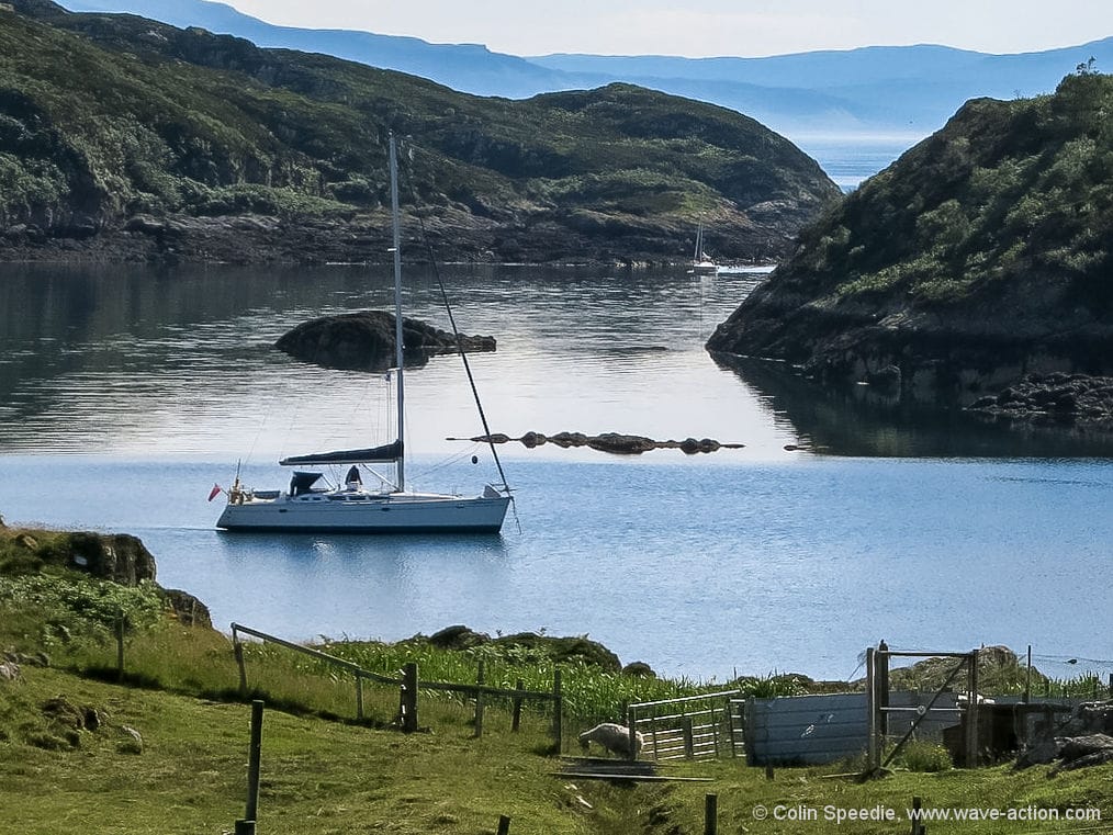 But the calm conditions also have their upside. Conditions for sighting wildlife are perfect, and many exquisite anchorages that are normally off limits become usable. As we had never seen the Sea of the Hebrides so calm, we explored that opportunity to the maximum, visiting favourites old and new, falling reluctantly asleep in the remotest of places to a symphony of seals on the nearby skerries.