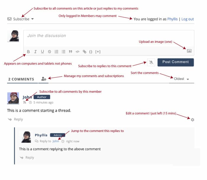 - Subscribe to all the comments on an article, or just one thread.