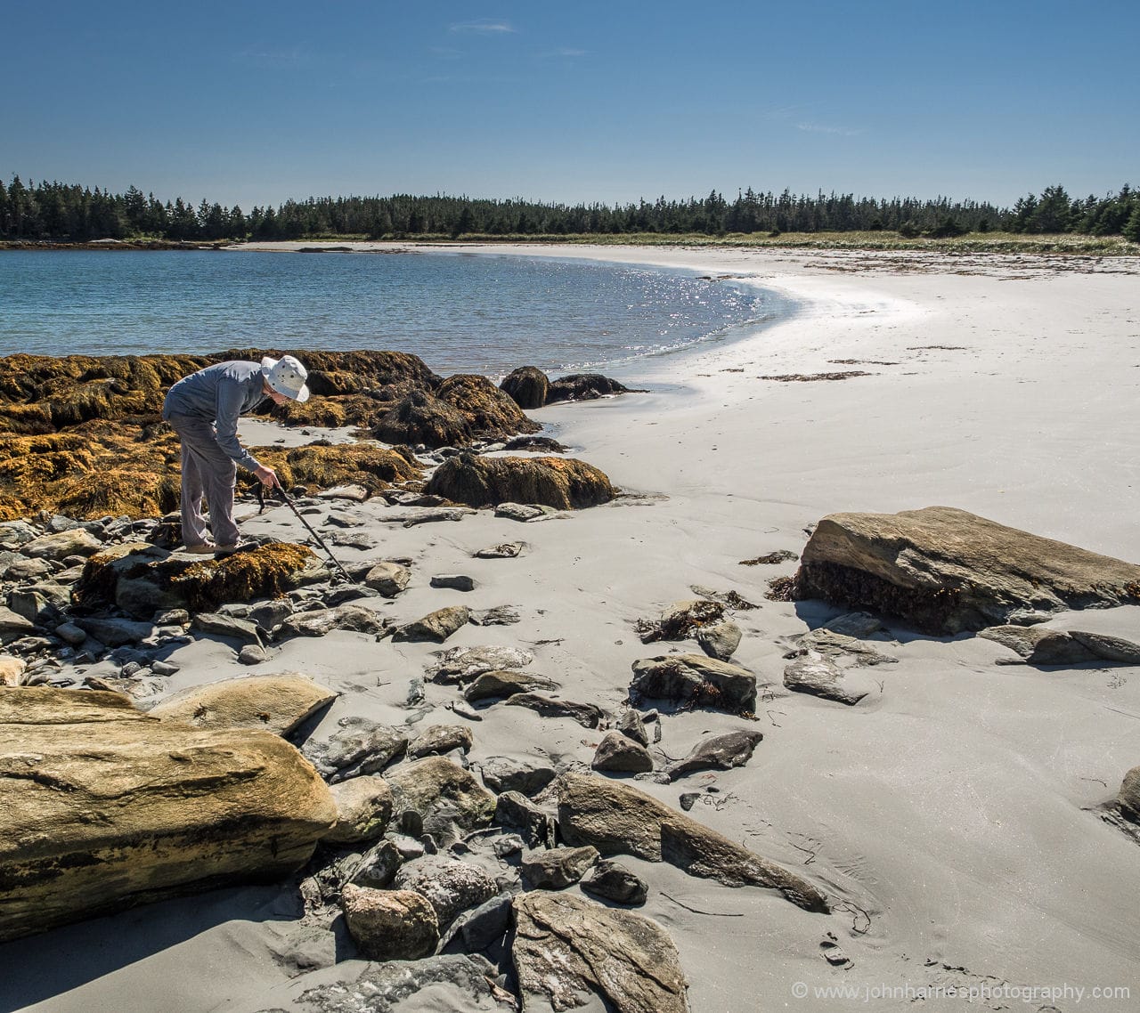 The following day we anchored the dinghy in a little cove on the mainland side of the anchorage, sheltered from the brisk southwest sea breeze, and hiked along a woodland path to a low isthmus—at spring high tides, I expect that Shelter Cove is on an island for a few hours—where we ate our lunch.