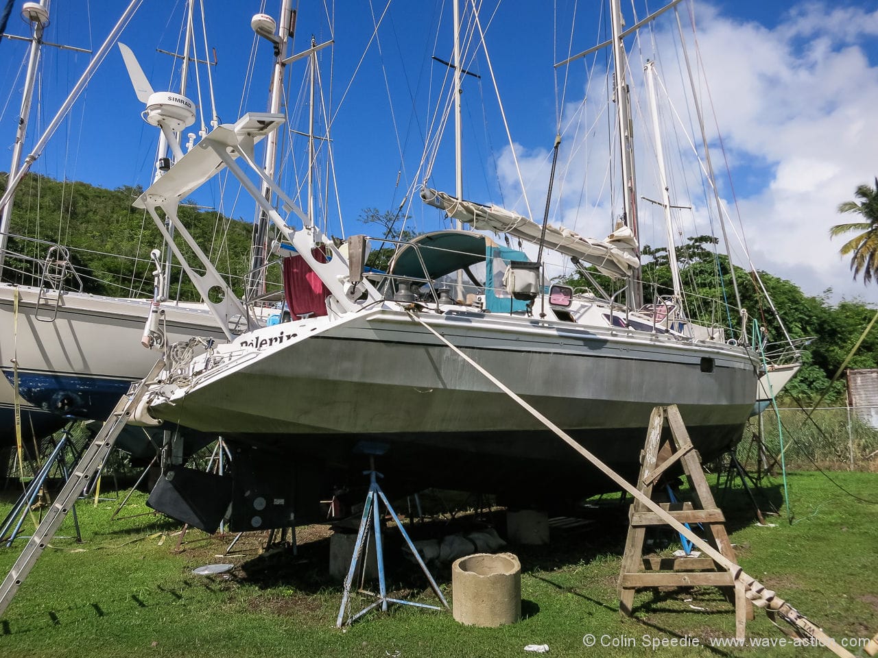 It’s axiomatic that successful cruises are proportionally related to time spent in the yard, so I had put in three weeks’ hard labour back in June before leaving her to the elements for five months. Arriving back here in the rainy season was quite a challenge, as the friendly boatyard at Grenada Marine is in a remote and verdant valley, peaceful beyond doubt, but home to a million bugs, all of whom fell on the two of us with glee, leaving us looking like measles victims. Two weeks on the hard sometimes felt like two years.