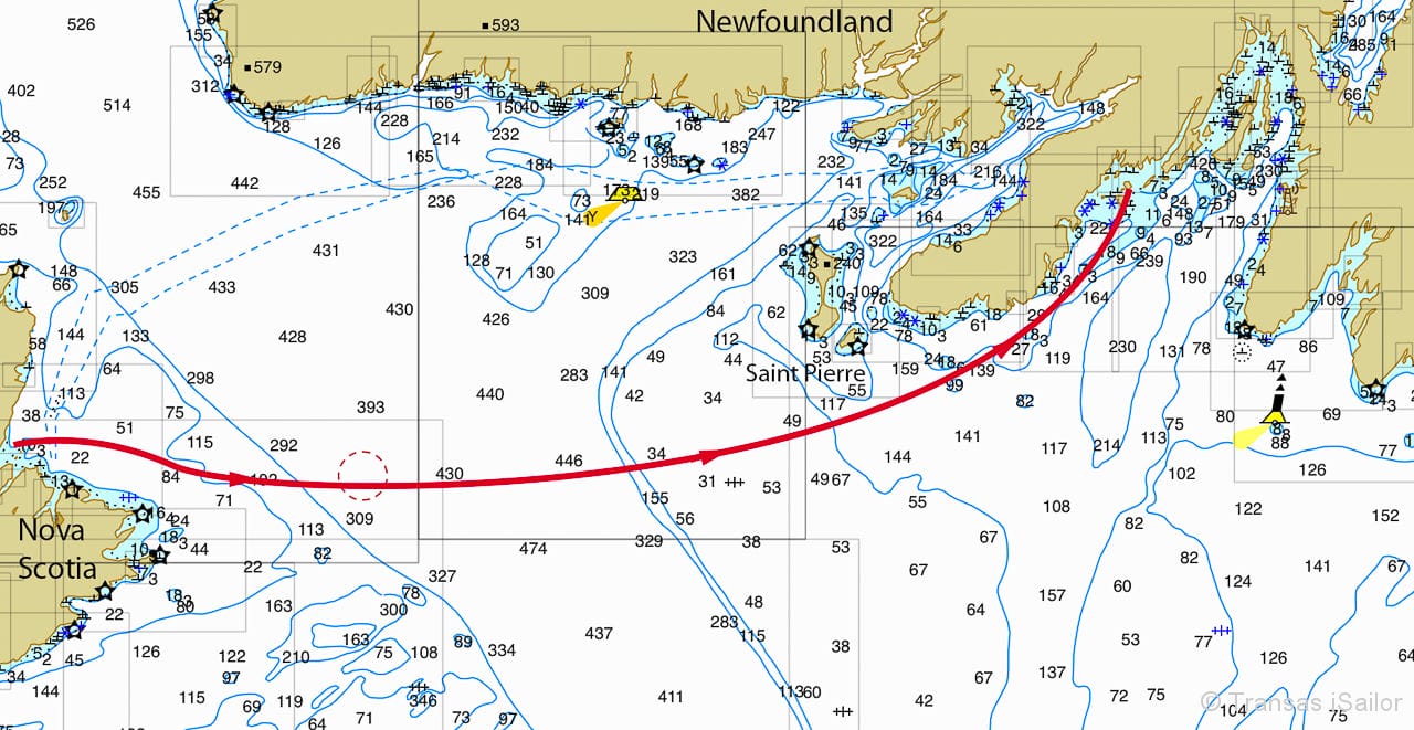 Now, getting to Newfoundland means crossing Cabot Strait (“The Chuck” as locals call it for reasons that are obvious to anyone with a sensitive stomach who has crossed that piece of ocean). This is a passage famous for thick fog, fluky winds, and uncomfortable seas; however, our wait in the Lakes paid off and we had clear skies and calm seas.