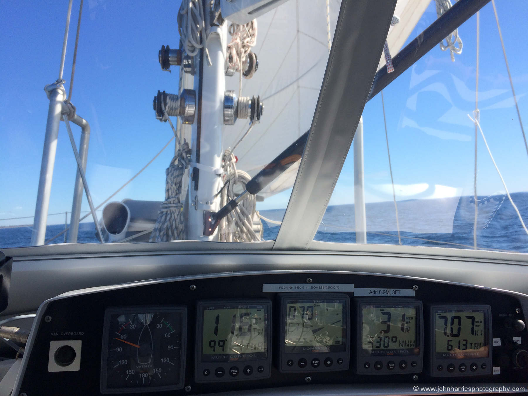 Even after 25 years of sailing her, this boat never ceases to amaze me: true wind 11.6 knots, boat speed 7.07 knots. Thank you, McCurdy and Rhodes.