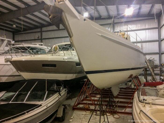 Many of you will remember that last winter we stored in the water here in Nova Scotia. It sorta—more on the sorta in a moment—worked out, but this year Morgan’s Cloud is back in her cozy shed at East River Marine (now East River Shipyard) and frankly I couldn’t be happier.