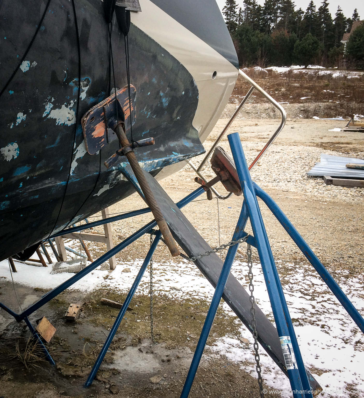 I have warned before about the dangers of winter storage on jackstands with the mast in, particularly in areas like Nova Scotia where the ground heaves due to freeze and thaw cycles. Anyway, the picture above is another sobering reminder.