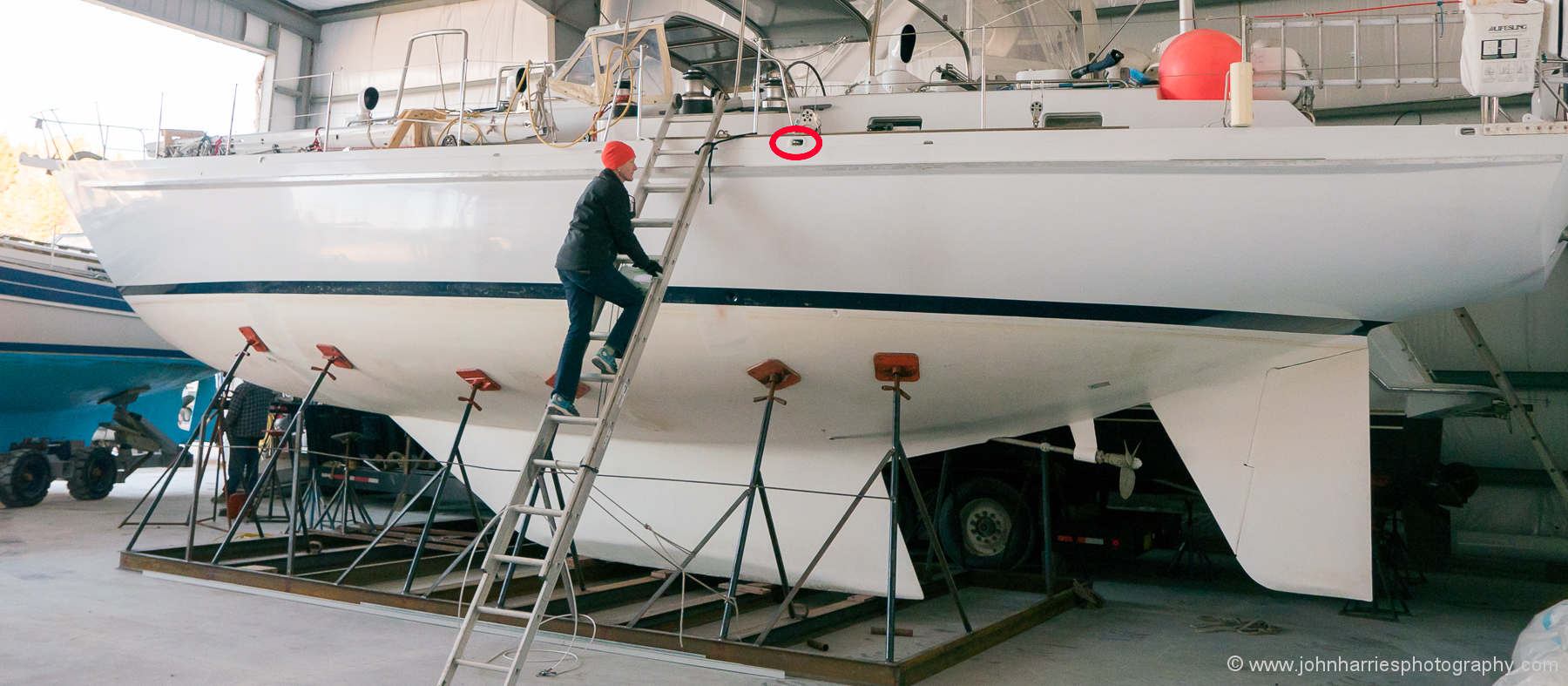 I’m rigging my Dufour 32 Classic for single-handed sailing. I have been pondering how to rig a fairlead at the “magic” point. As a standard production boat with an aluminium toe rail and integrated fairleads, it’s a messy (and expensive), job to introduce a new fairlead at the correct point.