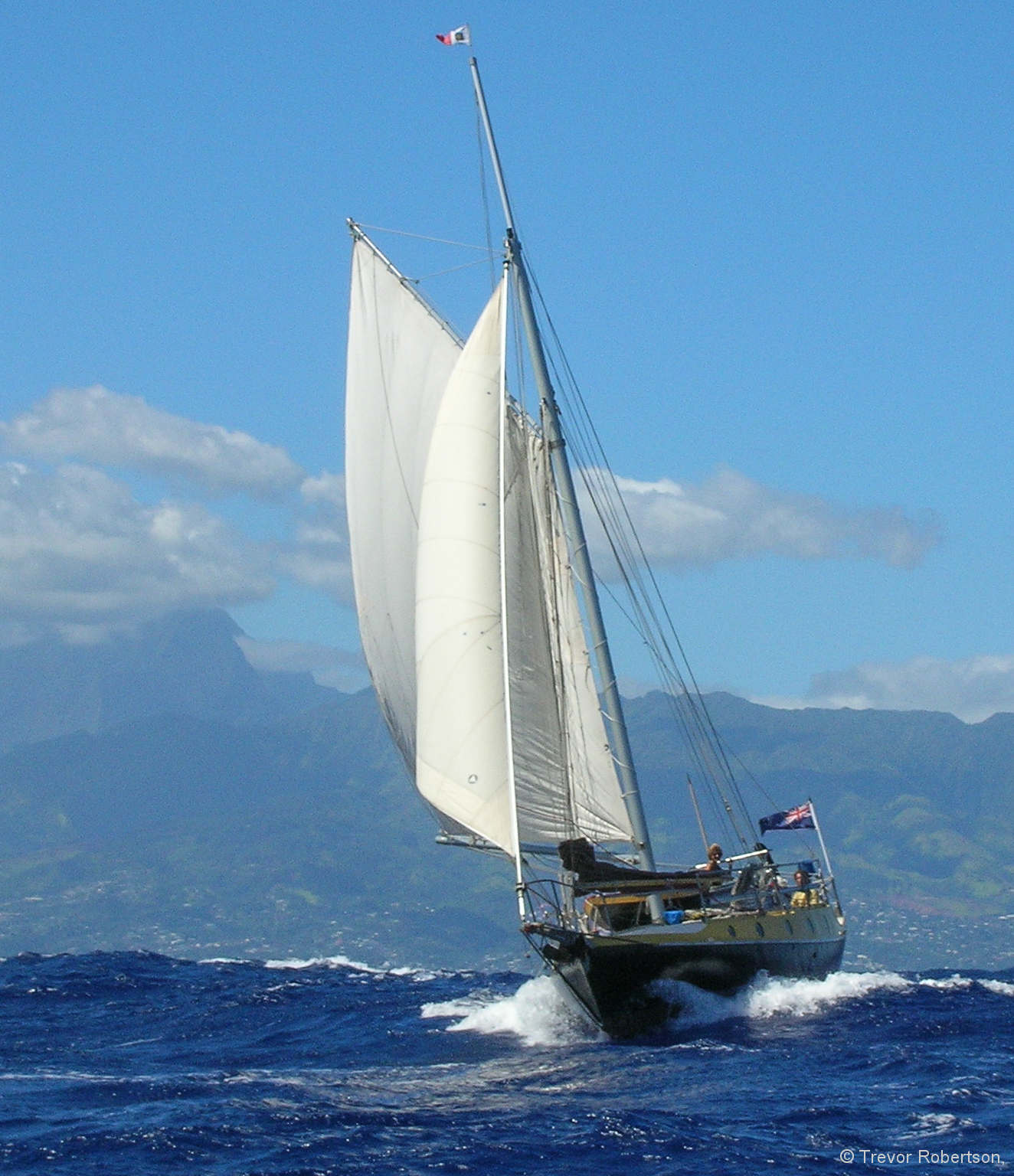 Trevor writes: “the drogue streamed out almost abeam as I hauled it in, leaving Iron Bark rolling and lurching beam on to the old sea. Worse, I was trying to haul the boat sideways into the wind to get the drogue back—an impossibility”.
