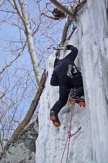 I also watched a climber invert, fall out of a too-loose harness, and die, not something I will forget. This is a significant hazard for sailors in foul weather gear, as it is difficult (or at least uncomfortable) to wear a seat harness sufficiently tight over layers and slippery gear. This is a major reason most ice climbers have switched to soft shells and short jackets for technical climbing; it is much easier to wear the harness properly. There is water dripping and it is cold, but no Gore-Tex for me. https://2.bp.blogspot.com/-KMnEZzYW2-k/VfcfO-gIo1I/AAAAAAAAKv8/ER7P7W7mHVU/s640/Leading%2Bin%2BWhite%2BOak.jpg