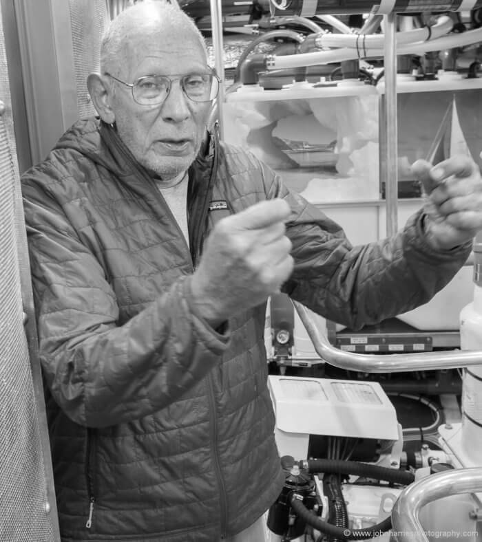 The newer FPB’s are ballasted. Our current boat, Buffalo Nickel, is FPB 64-7 and they have 6 tons of lead as ballast. That said, the design does keep the weight low and Steve hates anything heavy high up in the boat. Comfort underway is almost impossible to describe on a FPB-there is no comparison to a traditional displacement trawler.