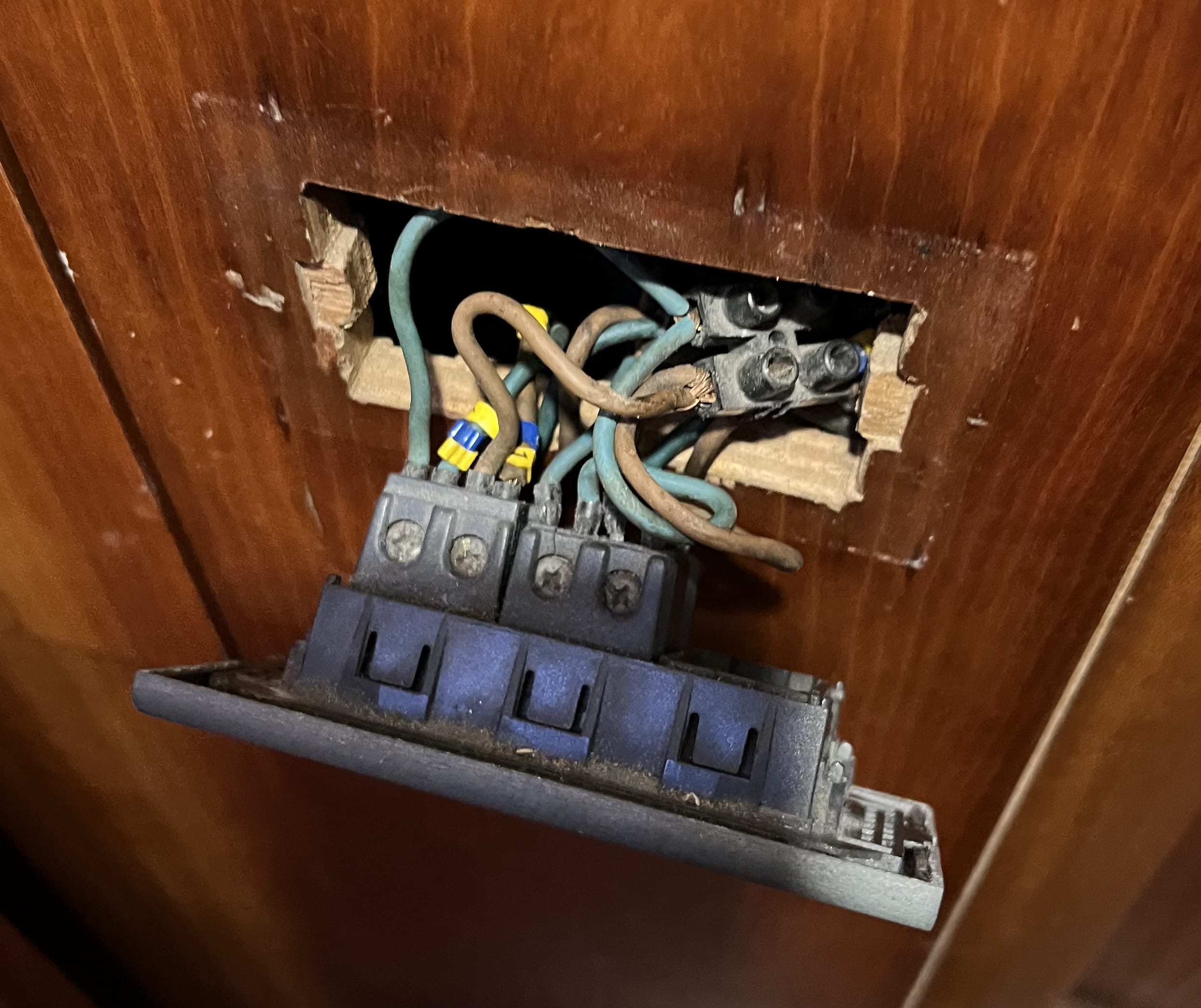 I’m really confused by the photo, and particularly the colour code. That almost looks more like shore power wiring, than DC? One other thought, perhaps it’s a double pole switch so that the same light(s) can be controlled from two different switches? Of course all of my wiring experience is on North American boats, so I could be quite wrong. Has anyone else seen anything like that before?