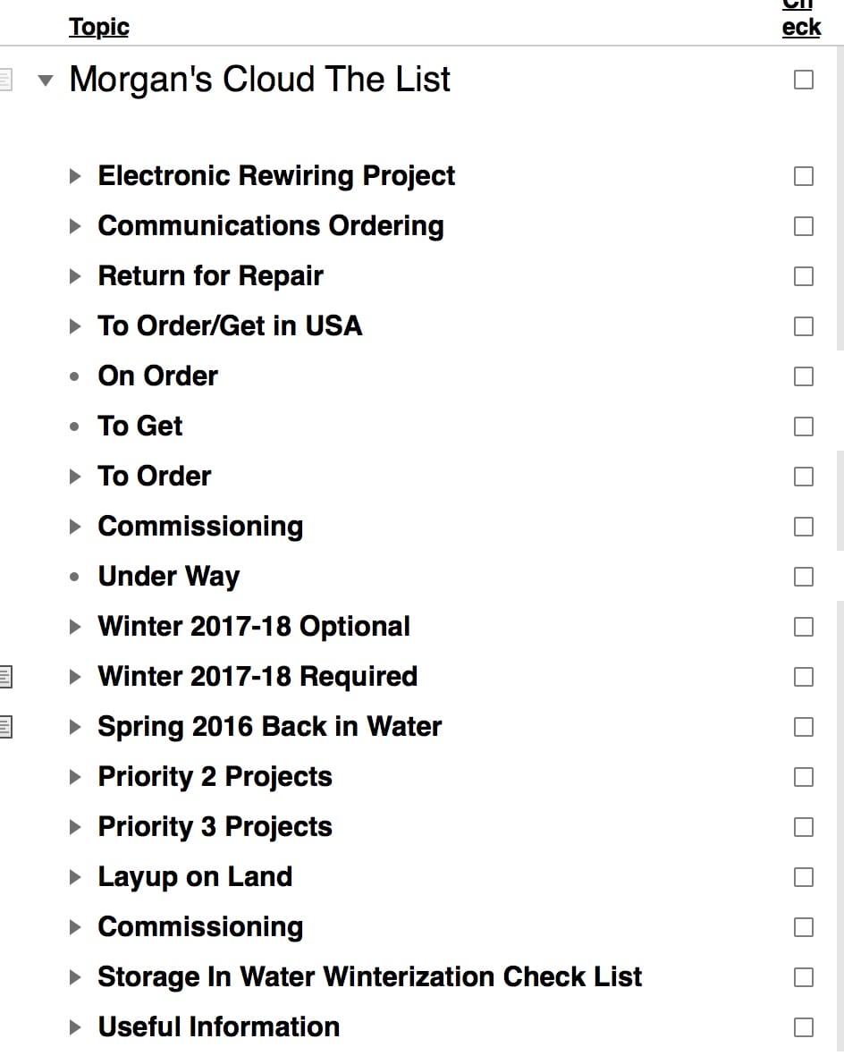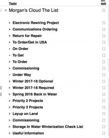 As a new live aboard, I have a lot of minor refit tasks to accomplish on a 15 year old boat, and something better than my text file lists, or spreadsheets, was needed. This article was spot on describing the value of a simple list tool, as I found out.