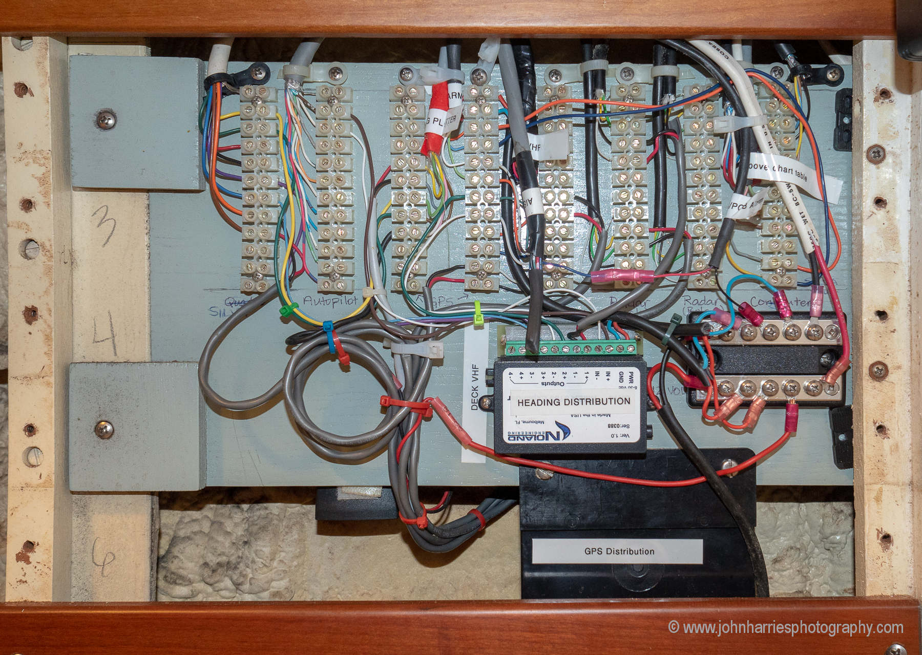 And, in the process, updating our NMEA 0183 network. A process made a lot easier by this dandy centralized patch panel that Phyllis built 18 years ago. (Still a lot to like about 0183.)