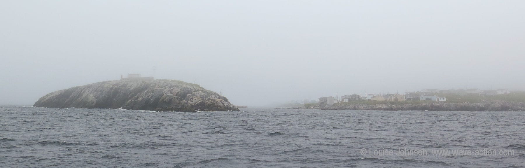 So, blundering along in the fog, getting knocked about by a ridiculously rough sea now that the wind had swung round, we crawled painfully inshore. We knew Port aux Basques was in there somewhere as we were in regular and mandatory touch with their Harbour Control via VHF to avoid any conflict with emerging or entering ferry traffic.