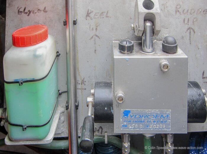 When I went through my usual post-passage check-over of the boat I was surprised to find that somewhere along the way we had lost some fluid from the hydraulic system that controls our centreboard and rudder.