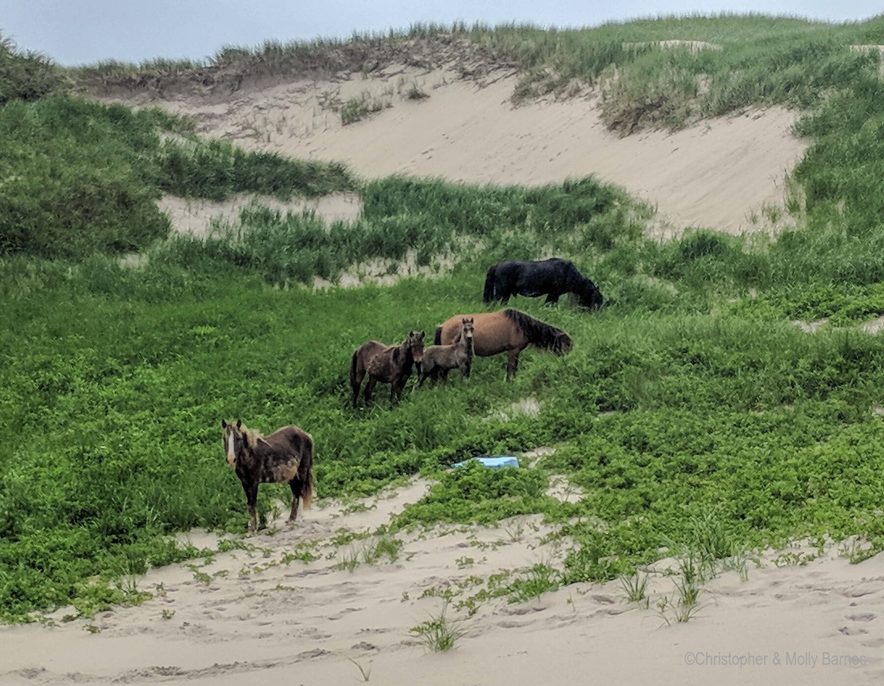 Some of the many highlights for us included coming across the wild ponies tending young and shedding their winter coats, the hundreds of terns defending their colony, the wide variety of grasses on the dunes, and the incredible beachcombing (“look but don’t take” is the rule in the Park, as it should be).