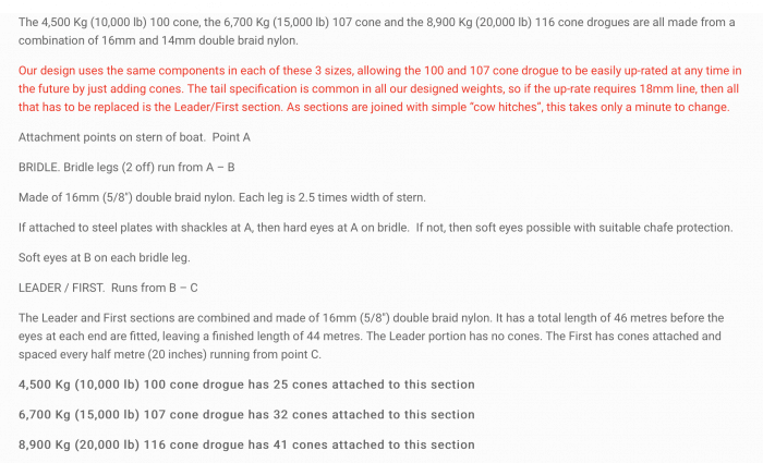Let’s now have a look at the Ocean Brake series drogue sales page: