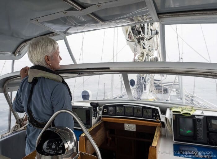A boat doing the same sort of thing nearly nailed Colin and Louise on Pèlerin a few years back. Come on people, navigating in fog is not a video game. We all need to read, and regularly reread, the COLREGS and follow them, as well as keep a good lookout. And that last includes opening up cockpit enclosures in fog so we can see and hear properly.