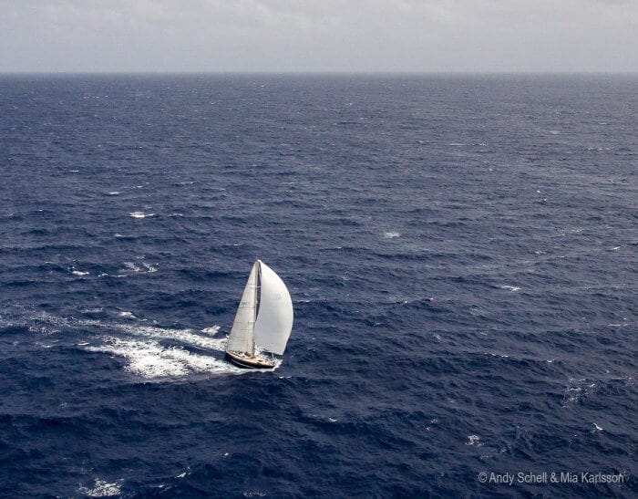 - in mid-Atlantic with the spinnaker up in 25-knots of true wind,