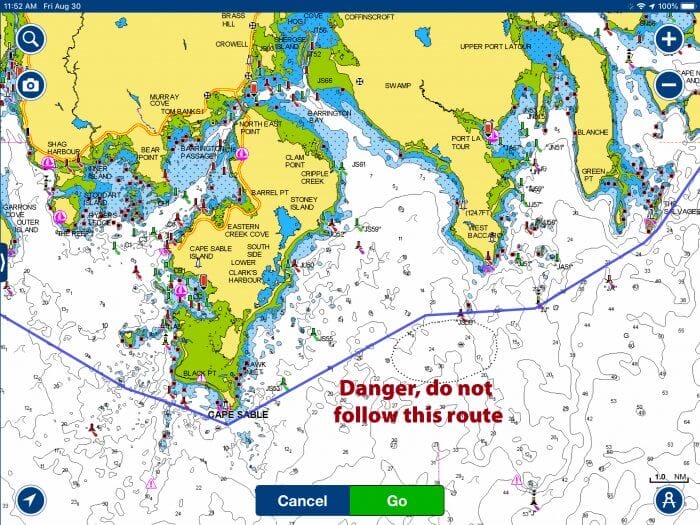 Thanks, but what is the intended audience for this article? Yes, its absolutely correct in everything it says, but surely no properly trained sailor is going to accept the route an electronic App suggests without also considering every aspect of the passage him/herself on either a paper or an expanded electronic chart and also considering the weather? Never mind that an error could kill you and your crew, its part of the discipline, and fun, of cruising to plan the passage, isn’t it? I venture that the real place for this piece is in a basic recreational boating magazine . . . that’s where it’ll save lives!