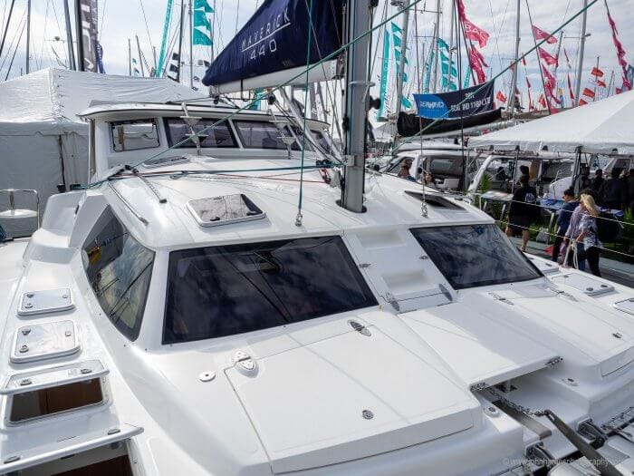 On the suggestion of a member with considerable offshore catamaran experience whom I met at the show, I spent a couple of hours being shown around the South African-built Maverick 440 by Robert, one of the principles.