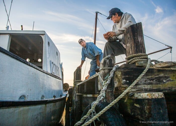 First the wire slipped off the sheave under the wharf, so the youngest guy jumped into the chilly water up to his nuts to jam the wire back in place—not young but still plenty tough.