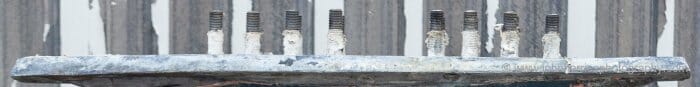 Several of the bolts had wastage: see photos. Corrosion from saltwater on stainless steel in a no-oxygen environment makes stainless brittle.