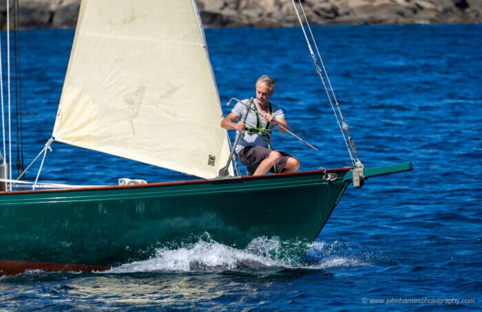 The little green boat is an L. Francis Herreshoff design owned by my friend Paul Baskett. We will be “racing” against each other this Saturday in Lunenburg along with a fleet of other wooden boats, a very casual affair, just for the fun of it with no handicaps.