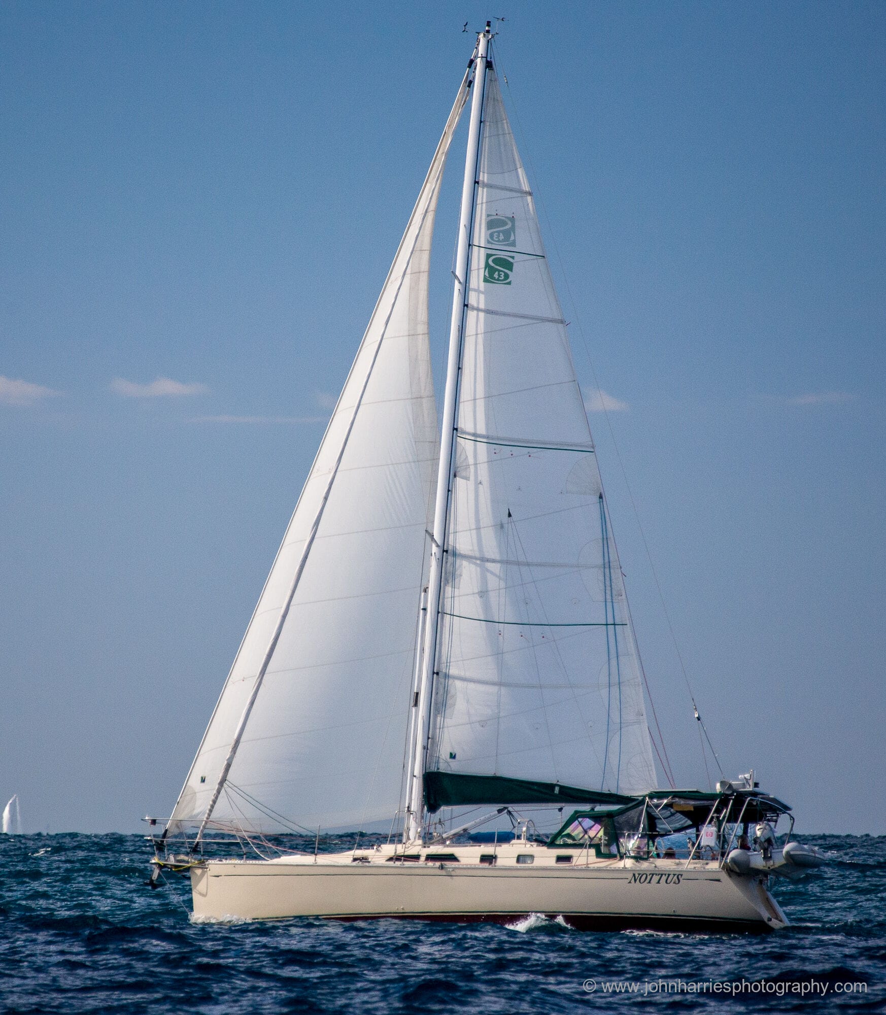 And the probable reason you have not had topping lift or spreader chafe is simple one of time and sailing inshore out of swell. For example, do a downwind trans-Atlantic and even if you have chafe guards on the spreaders, there will be holes in the sail by the time Barbados comes up over the horizon, if the sail is allowed to touch pretty much anything, and if the topping lift has been slapping around all that way, the leach will be toast too—tip coming on how to fix that.
