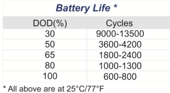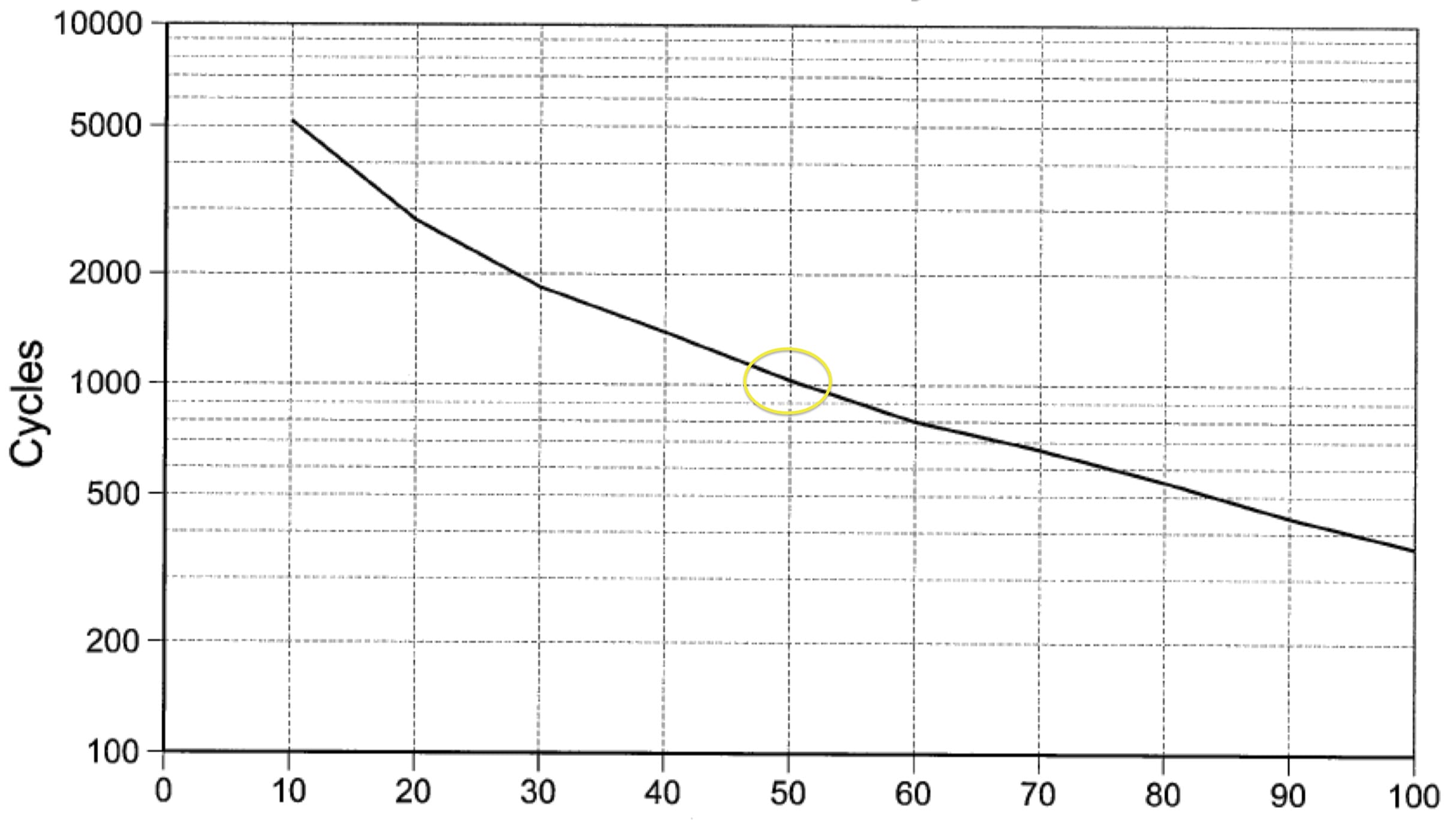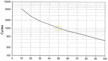 Above is a life-cycle graph from LifeLine’s manual showing an expected life of 1000 cycles.