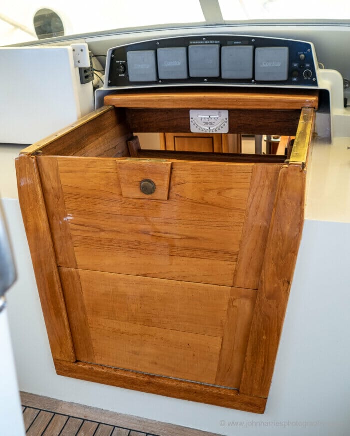 One question: You say that you stow the outboard in the lazerette. I’m guessing that’s only for longer passages and that you carefully drain all the gas (petrol) first?