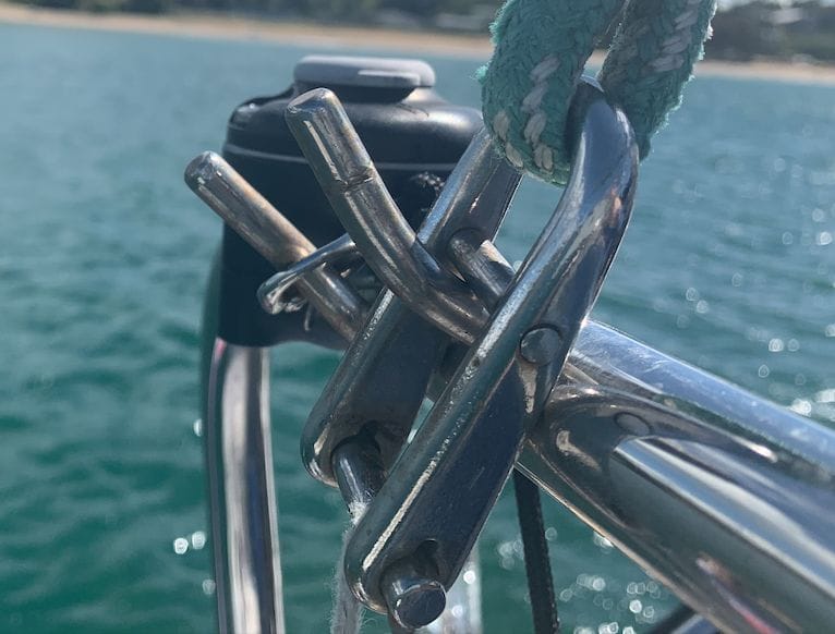 Instead we did many other storm survival related things, including installing a sea anchor using the Pardey Bridle system, and then changing over to, installing, and testing a Jordan Series Drogue…and then, when I found I had made a mistake on the chain plate installation, improving that.