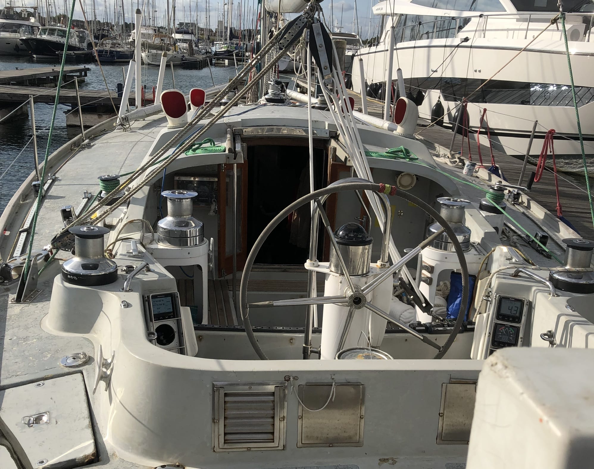 Speaking of electrics : The ergonnomy is such that all lines can be brought back to the big central winch. If you electrify this one you can do all manoeuvres with that one electric winch. (the winch is oversized to a 65 size).