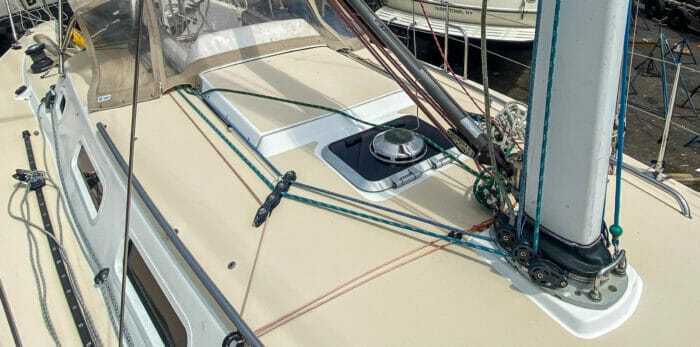 So we will either be moving all reefing lines and the main halyard to the mast, or figuring a way to do it all from the cockpit. I suspect the latter since it’s much more practical on smaller boats, with lower loads, than on large ones like our McCurdy and Rhodes where we did all reefing at the mast.