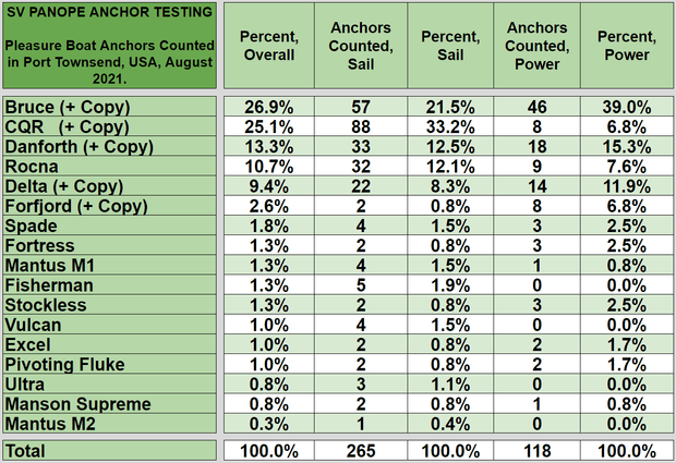 Also interesting that the most used new generation anchor is the Rocna, even though it has a dangerous dragging modality.