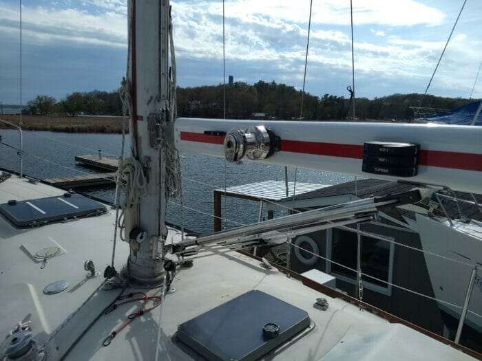 As it turns out, “Sail collapses in a great disorderly heap and then you tackle it like a football player” is not a great way to do mainsail reefing and furling. And the boom, after 45 years of abuse and modification, was, while structurally intact, showing its age cosmetically.