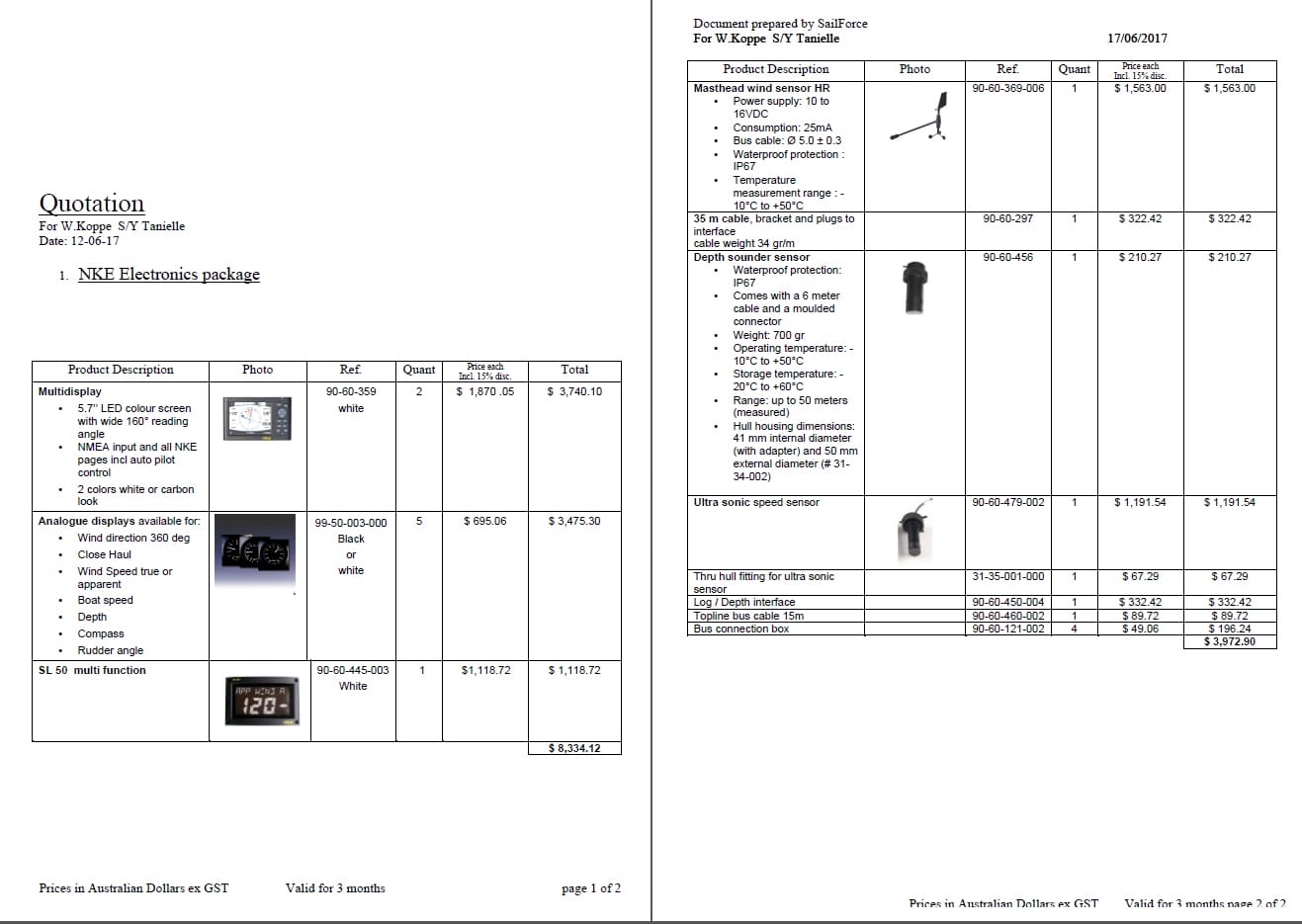 Please see below comments for a full NKE package including spares, for a total of $US 15785