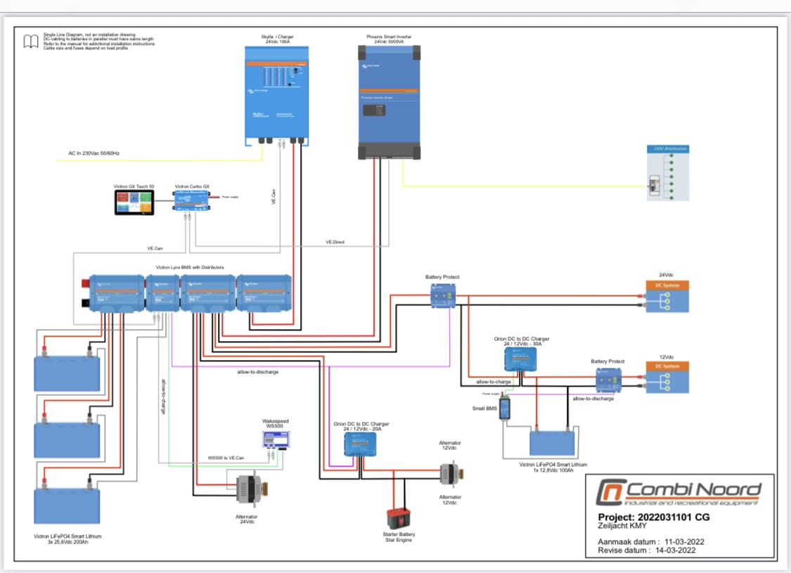 I am just getting ready to change out my 10 year old 800 Wh system on my bestevaer 56 with a victron lithium system so this conversation is quite relevant to me. I will have a 1000 mile coastal shakedown prior to crossing the atlantic in january. I attached a schematic of the new system. feel free to poke holes! I’d also be curious within this system which spares you would carry.