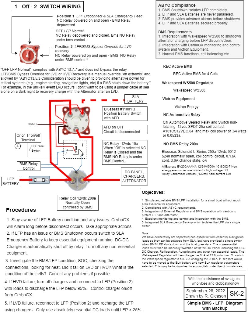 That’s a good point that I had not given a lot of thought to, but now you bring it up (thank you) I think that the best bet for charging the engine start would be another DC/DC charger fed from the lithium bank with another 2 pole switch allowing the input to the DC/DC charger to be moved to backup bank if the lithium bank fails. This has the nice side effect of providing a backup DC/DC charger.