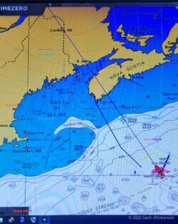 At the request of the insurance company, Phil went out with a team on a fishing boat out of Pubnico, Nova Scotia, found the abandoned boat, secured the mainsail and boom, got the systems going again, and brought her back to Halifax under her own power supplemented by the headsails.